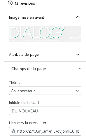 - Lien vers la newsletter : URL du bouton en bas de page retournant sur la newsletter.