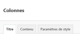 - Onglet « Contenu » : Contient tous les champs spécifiques au bloc, cet onglet diffère d’un bloc à l’autre.